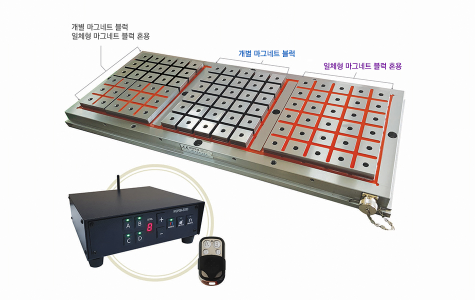 - 개별형 마그네트 블럭에 비해 자력이 15% 이상 상승한다.