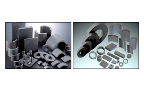 - 현재 가장 광범위하게 쓰이는 자석으로 섞는 재료와 제조방법, 그리고 착자방법에 따라 바리움(Barium), 스트론튬(Strontium) 또는 습식, 건식 그리고 등방성, 이방성 등으로 분류한다. 페라이트 자석의 주원료는 산화철이며, 페라이트 원료에 고무나 플라스틱 원료를 섞어 성형을 하면 고무자석 또는 플라스틱 자석이 된다.